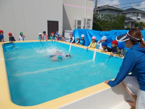 今日もとっても良い天気でしたね。 プール遊びを楽しむ皆、それに加え、野菜の試食を楽しむクラスにシャボン玉液を作って楽しむクラス… 各クラス、様々な取り組みを通して楽しく1日を過ごしました。 『最後のプール。出来るようになった事発表会!』 『うち…