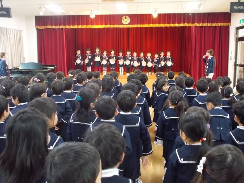 本日は2月のお誕生日会。 ひとつ大きくなった皆のお祝いをしました♪ 「おたんじょうびおめでとう~!!」 先生からのプレゼントは、節分にちなんだお話の劇でした。 節分の意味を知った後、「鬼は外、福は内!!」と掛け声で劇に参加するみんな。 無事に鬼…