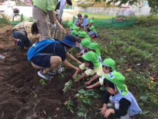 掘れたサツマイモは後日、『年少組』が綺麗に洗い、『年中組』が皮むきをし、給食で頂く予定です。