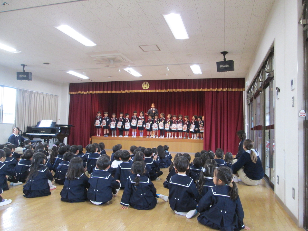 2025-11-05 お誕生日会 日常の出来事・ご連絡 年長 年中 年少 つくし組 今日は11月生まれのお誕生日会がありました! みんなで歌を歌い、園長先生からメダルをもらって大喜びでした😊 そして、今月のお楽しみは『楽器クイズ』! ‘幕に隠れて鳴っている音は、何でしょう?‘ 誕生日のお友達が鳴らす楽器をみんなで当てるクイズをして、大盛り上がりでした! 最後には、園長先生のお話を最後までしっかり聞くことができました! お友だちのことも、みんなで使うおもちゃや楽器のことも大切にしましょうね。 11月生まれのみんな、お誕生日おめでとう!!